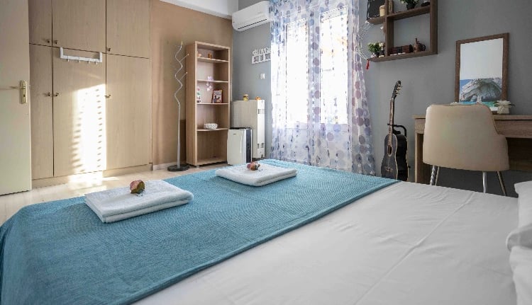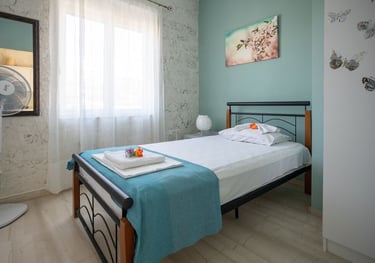 A wardrobe is available in the bedroom, providing practical storage space for your belongings. Additionally, you can enjoy breathtaking views of the magnificent Cretan mountains and the green expanses of olive fields.
